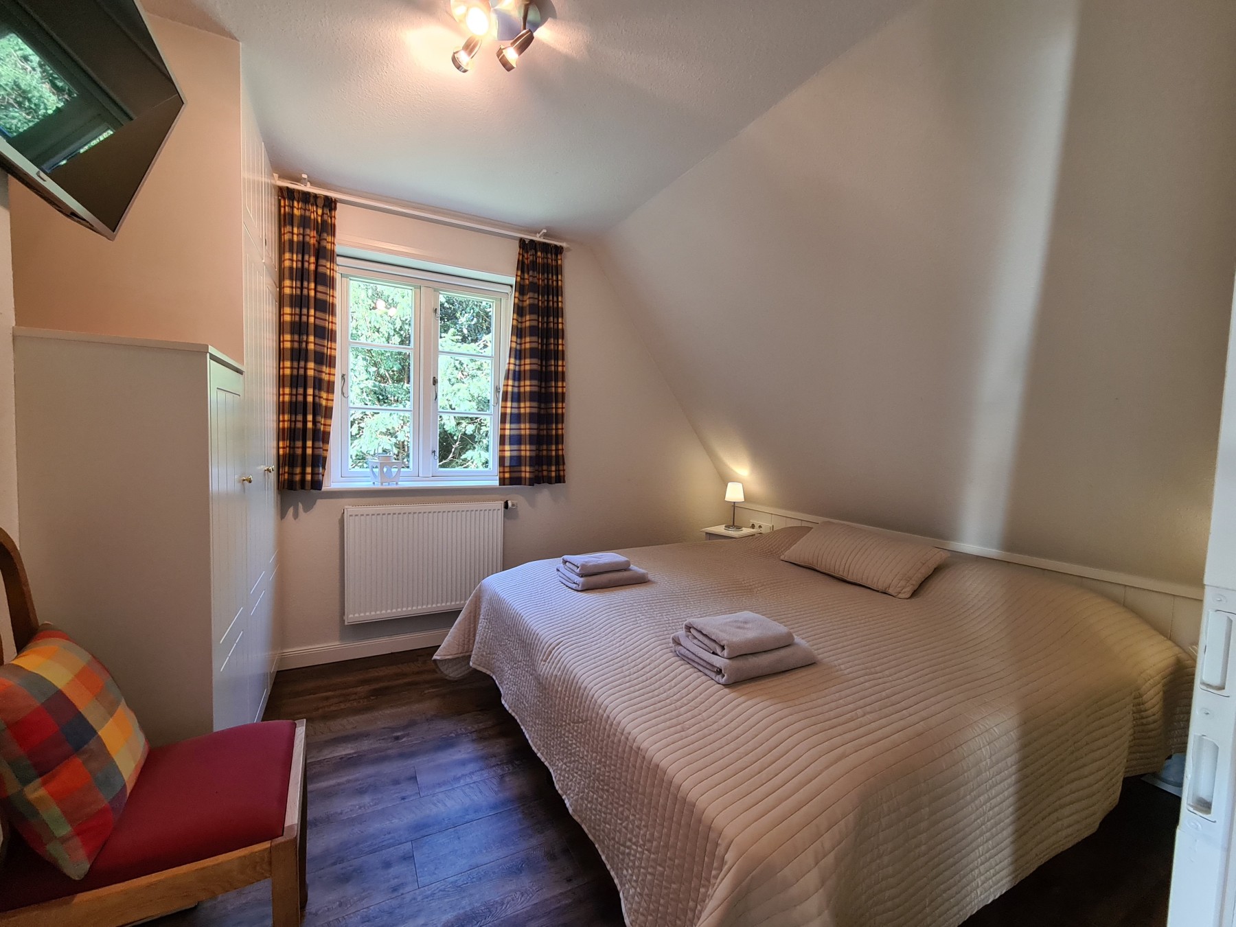 Die komfortabel und modern eingerichtete Haushälfte liegt absolut ruhig und ganz nah am alten Leuchtturm des Südstrandes. In wenigen Minuten erreichen Sie den Strand mit der Promenade, die Stadt, sowie das Wellenbad und und die Surfschule. Auf der mit Sitzmöbeln, Sonnenschirm und Strandkorb ausgestatteten Terrasse genießen Sie eine ruhige Zeit zu zweit oder mit der Familie. Im Erdgeschoss befindet sich ein Duschbad und der Wohn-Essbereich mit Küche. Im oberen Bereich befindet sich ein großes Duschbad mit Waschtrockner, zwei Schlafzimmern mit Doppelbetten, ein Schreibtisch im Flur und ein weiteres Schlafzimmer für Kinder mit zwei Einzelbetten. Auf der Terrasse und vor dem Haus stehen Abstellräume zur Verfügung. Mit dem Kamin und der Außensauna runden Sie ihren Urlaub ab und fühlen sich hier zu jeder Jahreszeit wohl.